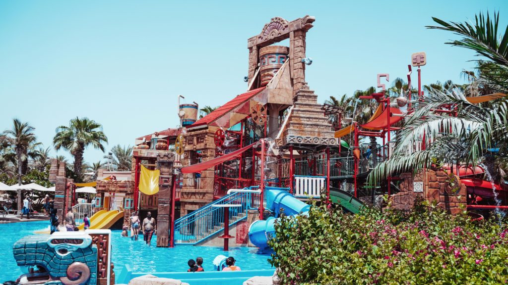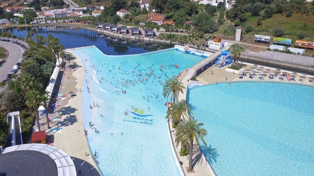 Piscinas que simulam ondas do mar, proporcionando uma experiência de natação única.